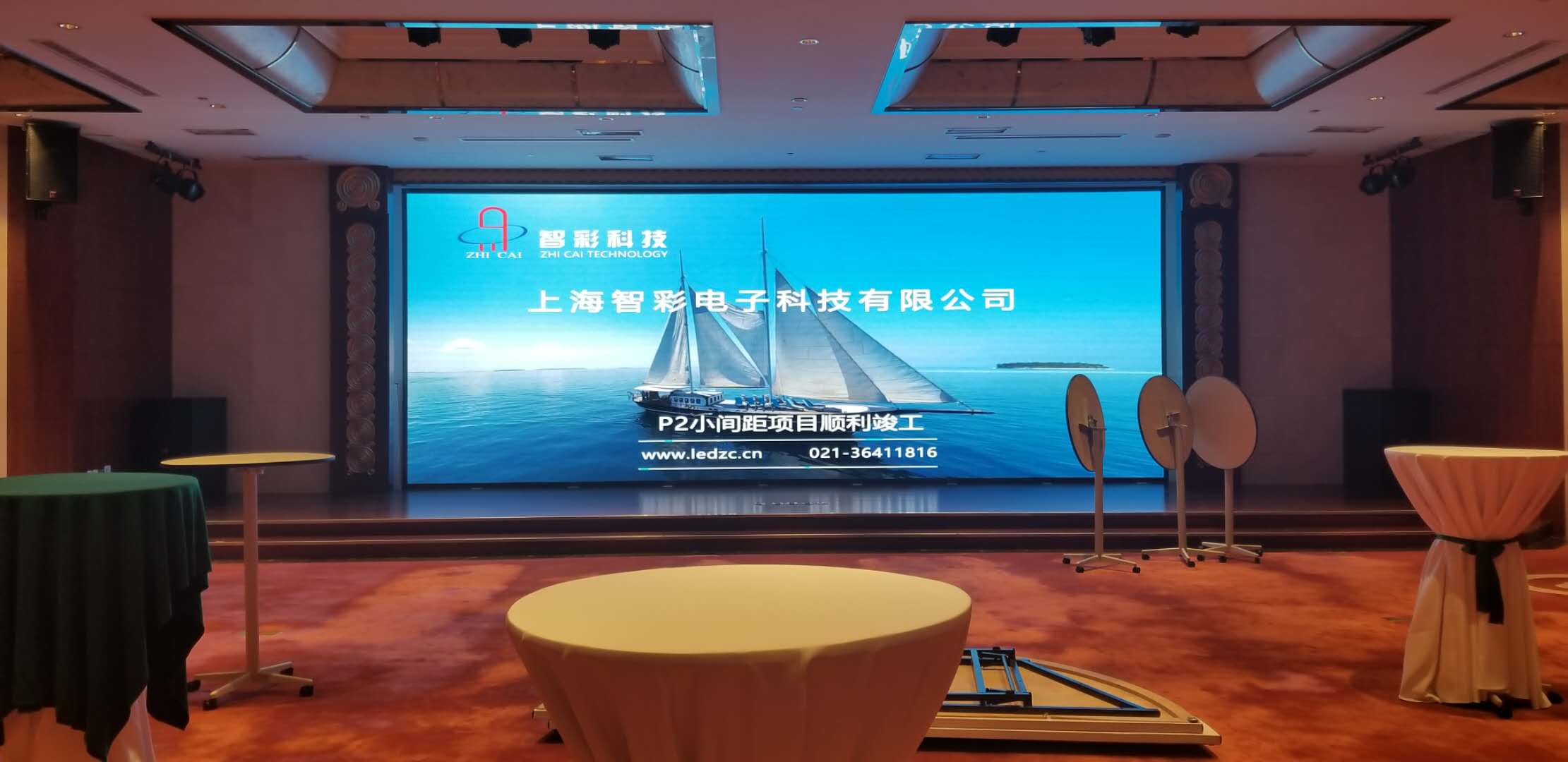 北上海大酒店P2.5室內小間距LED顯示屏由智彩科技承制